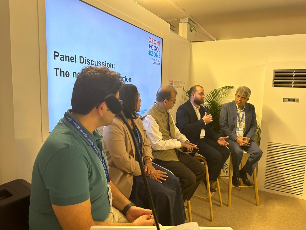 ومن بين 366 حدثًا جانبيًا رسميًا، تعاونت شركة يوروفنت الشرق الأوسط مع برنامج الأمم المتحدة للبيئة لاستضافة حدثين مشتركين. الأول، الذي عقد في 3 ديسمبر في جناح بروتوكول مونتريال لتعزيز العمل المناخي (منطقة تبريد الأوزون)، يتألف من مائدة مستديرة حول التطورات التقنية في مجال التبريد في البلدان ذات درجات الحرارة المحيطة المرتفعة، والتي تسمى "التبريد منخفض الانبعاثات في بلدان HAT: التطورات التقنية". وتناولت المائدة المستديرة معضلة التعامل مع درجات الحرارة القصوى وزيادة الطلب على التبريد، مما أدى إلى حلقة مفرغة من زيادة انبعاثات غازات الدفيئة.