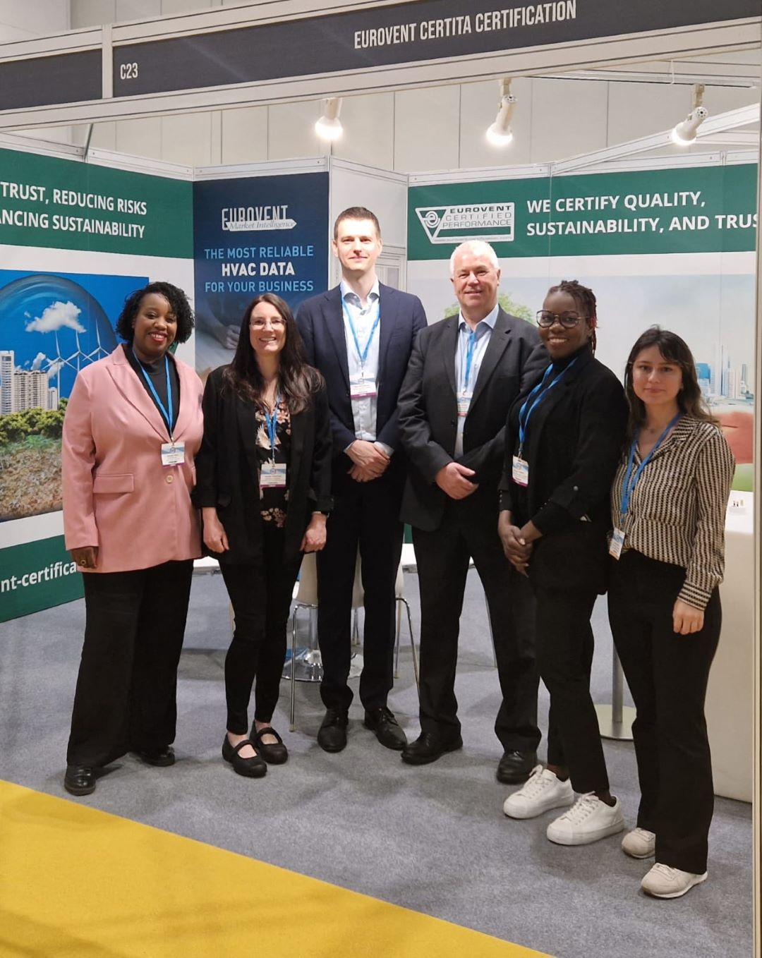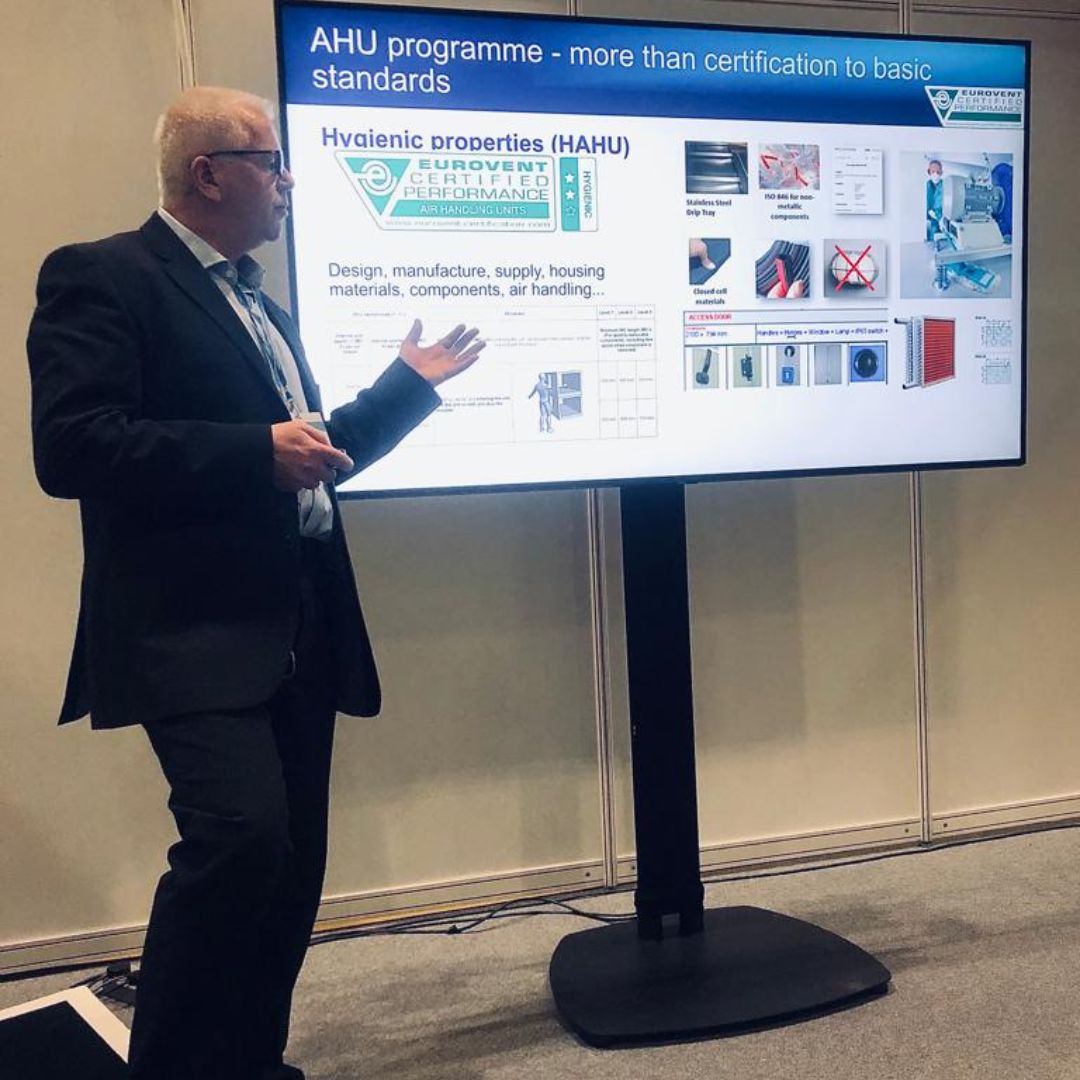 After a COVID-19 enforced break, it was the turn of the UK’s HVAC & Refrigeration Live to reopen its doors from the 18th-19th April, at the ExCel London. Eurovent Certita Certification (ECC) exhibited at the 2-day event, with colleagues from Eurovent Association and Eurovent Market Intelligence (EMI) manning the exhibition stand. The team also got involved in the seminar programme with ECC’s Business Partnership Manager, Ian Butler, presenting on the importance of reliable air handing unit data, while EMI’s Market Intelligence Analyst, Beyza Aykurt compared the British vs European HVACR market.