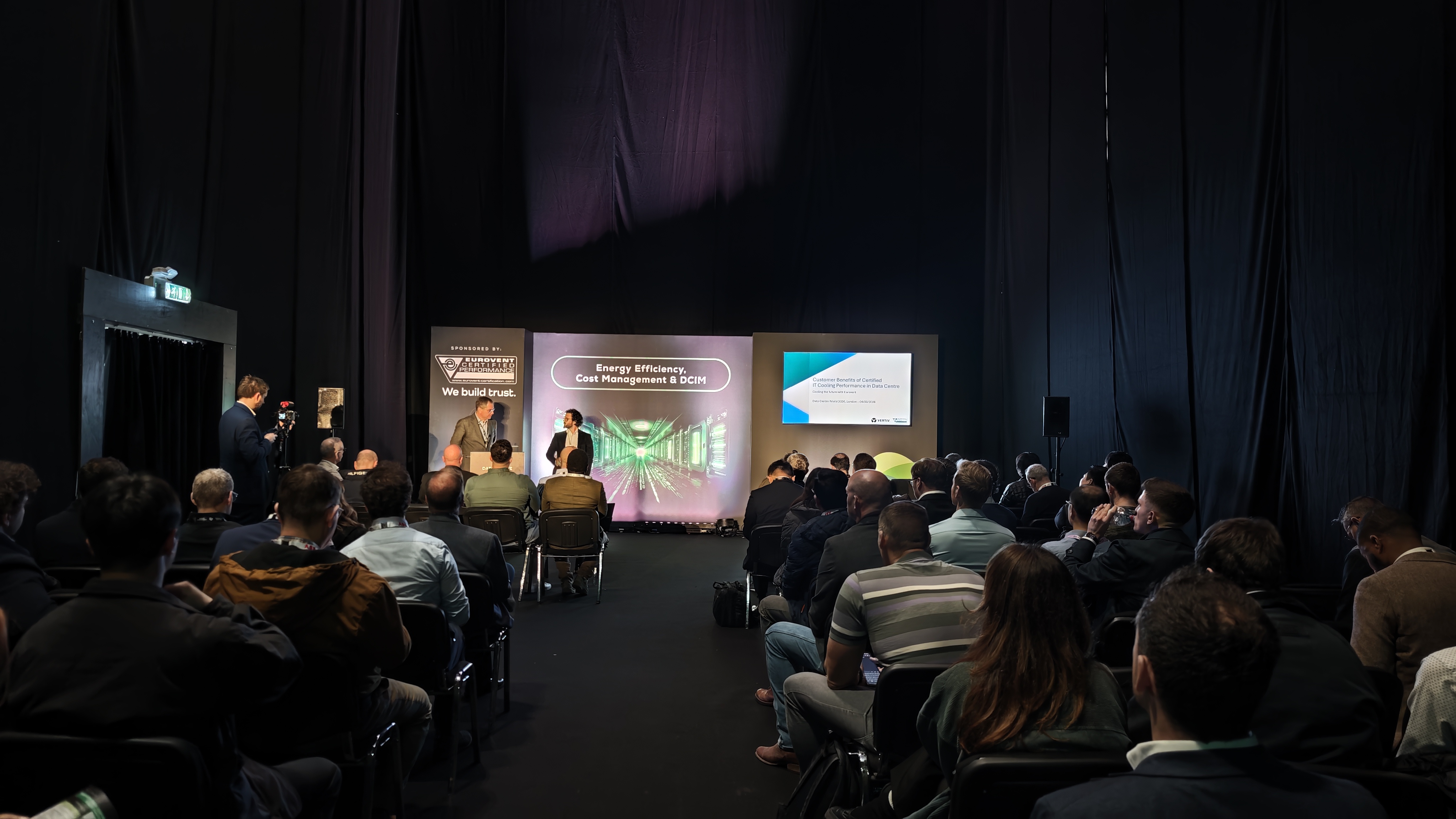 The programme kicked off on Wednesday morning over in the Energy Efficiency, Cost Management & DCIM theatre, with a deep dive into the “Customer Benefits of Certified IT Cooling Performance in Data Centres.” Mustafa Dilsen, Head of Thermodynamics Commercial & Industrial Department at Eurovent Certification and Andrea Spazzini, EMEA, Offering Manager Chilled Water System Thermal Management at Vertiv, explored how certification supports smarter procurement and more reliable factory testing, before bringing it to life with a real-world case study from the Netherlands.