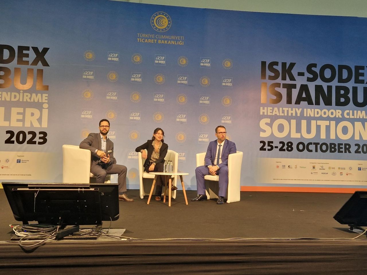 From Wednesday 25th to Saturday 28th October, the Istanbul Expo Center played host to the 16th ISK-SODEX trade fair in Istanbul, Turkey. The biennial event connects the climatisation industry worldwide, bringing together the international HVAC&R, insulation, pump, valve, fittings, water treatment, fire prevention, pool and solar energy sectors under one roof. With this year’s theme being 'Healthy Climate Solutions', there was the opportunity for the full Eurovent family to get involved. Eurovent Association was an International Supporter Association, while the team from Eurovent Certita Certification (ECC), ProdBIM, and Eurovent Market Intelligence set up stall in exhibition hall 4 at booth E01.