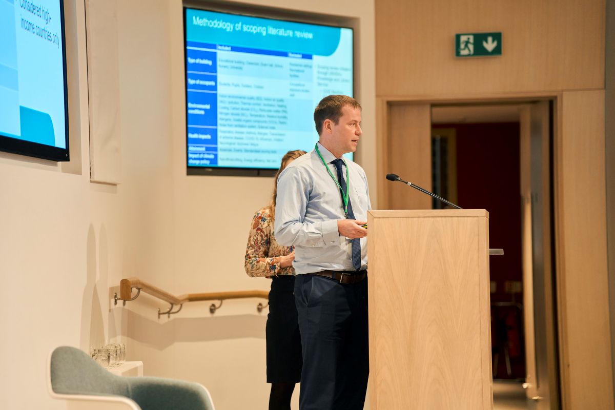 Sani was first up, giving an overview of the UKHSA and a whistlestop tour of the important work it has been undertaking on Indoor Environmental Quality (IEQ) in schools. Sani closed with what would become a key theme for the day; that the best results are achieved when Government, industry and academia work together.
