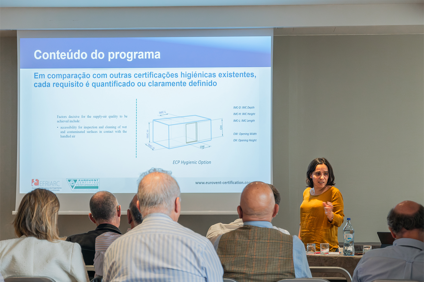 On the 6th and 7th June, consultants, designers and those working in project offices from across Portugal, gathered together for two events on the hygienic requirements of air handling units (AHUs) in energy-efficient buildings. EFRIARC (Portuguese Association of Industrial Cold and Air Conditioning Engineers) and Eurovent Certita Certification (ECC) joined forces to present the technical seminars on consecutive evenings, with the first event held on Tuesday 6th June in Lisbon, at the Hotel Ramada Lisbon, and the second on 7th June in Porto, at the Hotel Dom Henrique.