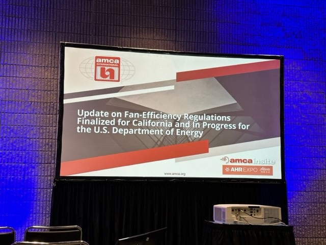 AHR Expo covered a number of key issues, both celebrating the industry and giving warnings of challenging times ahead. A presentation by AMCA (Air Movement & Control Association) explained that manufacturers will find themselves subject to new energy efficiency calculations when the Title 20 Fan-efficiency regulation for California comes into force on 16th November, 2023. It is expected that the energy efficiency calculations will be classified based on ‘Wire to Air’, which could also have an impact on products within the energy efficiency standard ASHRAE 90.1 – Energy Standard for Buildings.