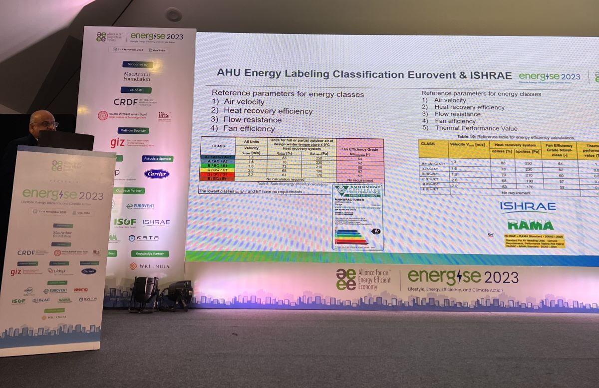 Eurovent Certita Certification è stata entusiasta di partecipare a Energise 2023 e alla District Cooling International Conference, organizzata dall'Alliance for an Energy Efficient Economy (AEEE) a Goa, in India. Gli eventi hanno preso il via dal 31 ottobre al 1° novembre con la District Cooling International Conference, mentre Energise 2023 si è svolta dal pomeriggio del 1° al 4 novembre. L'Associazione Eurovent è stata partner di Energise 2023, con PK Goel, consulente tecnico e industriale per la certificazione Eurovent Certita, che ha fatto parte del comitato tecnico di Energise 2023 e si è unito alla schiera di relatori per presentare con FläktGroup India.