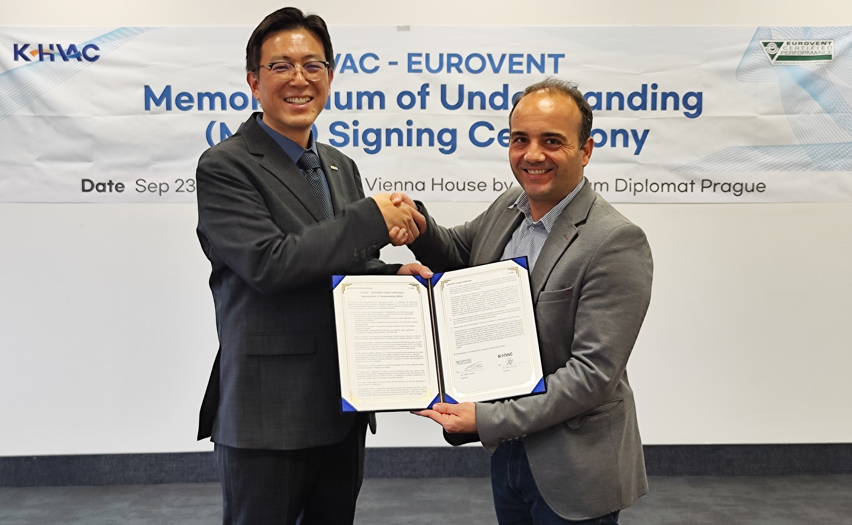 В целях содействия международной гармонизации стандартов, обмена знаниями и развития сотрудничества в области испытаний и сертификации продукции независимая организация по сертификации характеристик продукции Eurovent Certification и ведущий южнокорейский институт по испытаниям систем отопления, вентиляции и кондиционирования воздуха Korea HVAC Testing Institute (K-HVAC) 23 сентября 2025 года подписали меморандум о взаимопонимании (MOU).