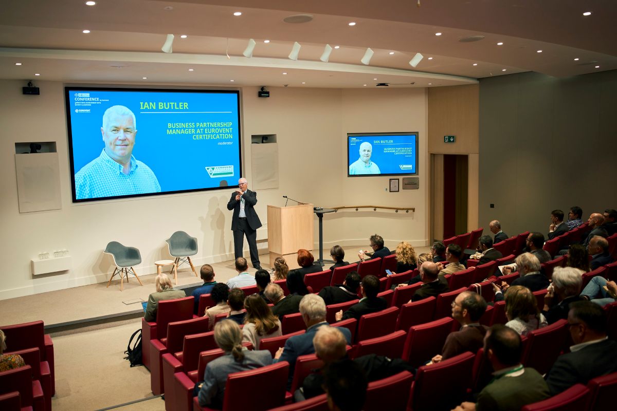 После фуршета в Библиотеке Максвелла делегатов приветствовал в Лекционном театре Тьюринга ведущий мероприятия, менеджер по развитию бизнеса Eurovent Certification в Великобритании Ян Батлер. После изложения программы дня началась первая презентация.