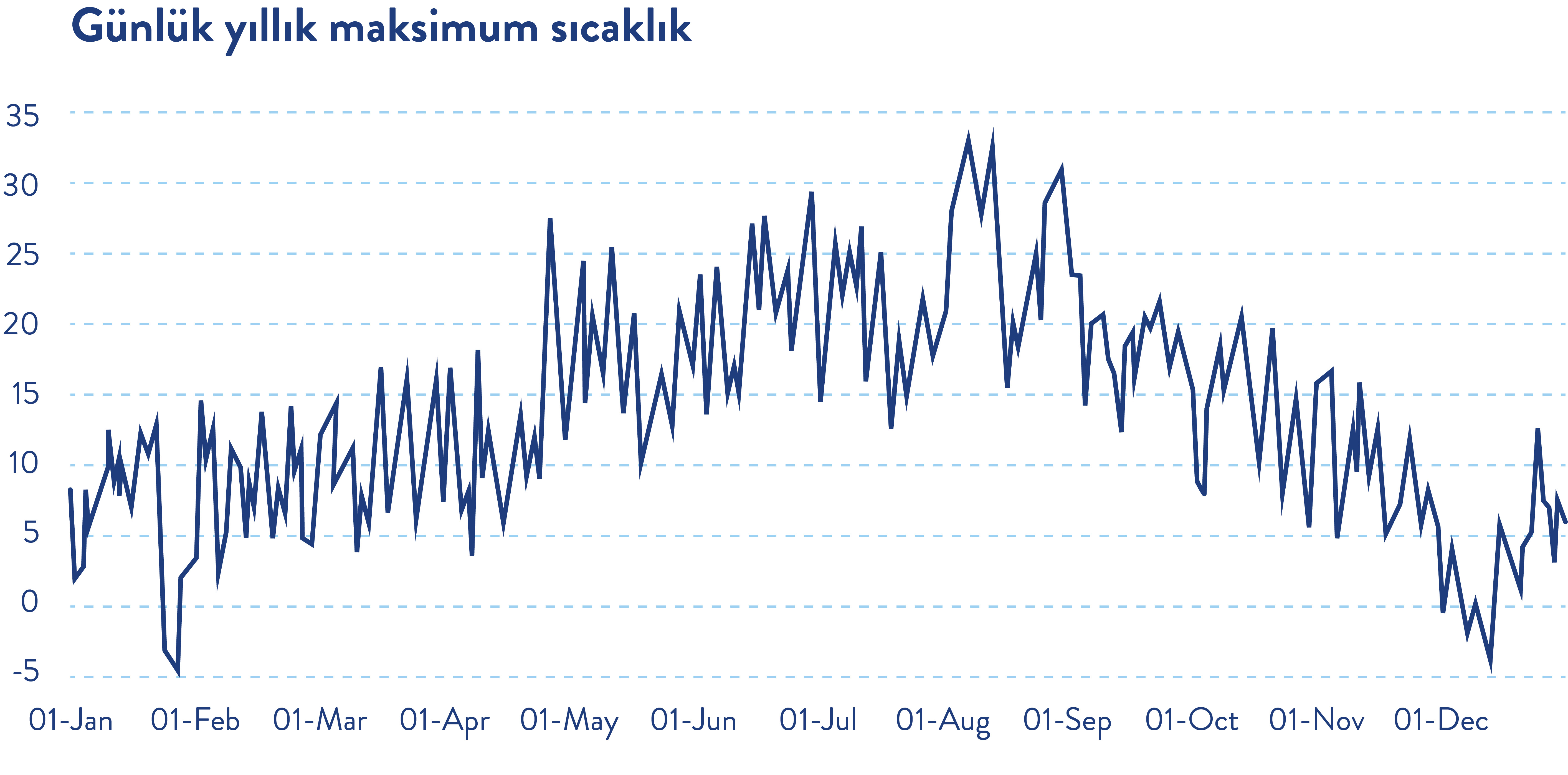 Şekil 1: Günlük yıllık maksimum sıcaklık